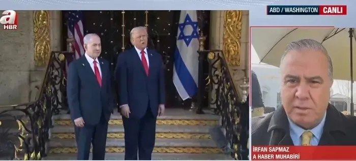 Beyaz Saray önündeki atmosferi ve karşılama protokolündeki skandal ayrıntıları paylaşan İrfan Sapmaz, "Normalde bizim bulunduğumuz yerden Sayın Cumhurbaşkanı Recep Tayyip Erdoğan buradan karşılanmıştı, 'Kuzey Kapısı' diyoruz biz buraya. Ancak Netanyahu'yu Güney Kapısı'ndan aldı. Bu fotoğrafı vermemesi çok ilginç. Karşılama seviyesini düşük göstermek istediğini düşünüyorum. Cumhurbaşkanı Erdoğan'ı askeri törenle karşılamış, gülücükler dağıtmış ve gazetecilere seslenmişti ama bunların hiçbiri şu anda yok." ifadelerini kullandı. Sapmaz ayrıca, Netanyahu'nun içeri girişi sırasında dışarıda devasa protesto gösterilerinin yaşandığını ve güvenliğin en üst seviyeye çıkarıldığını aktardı.