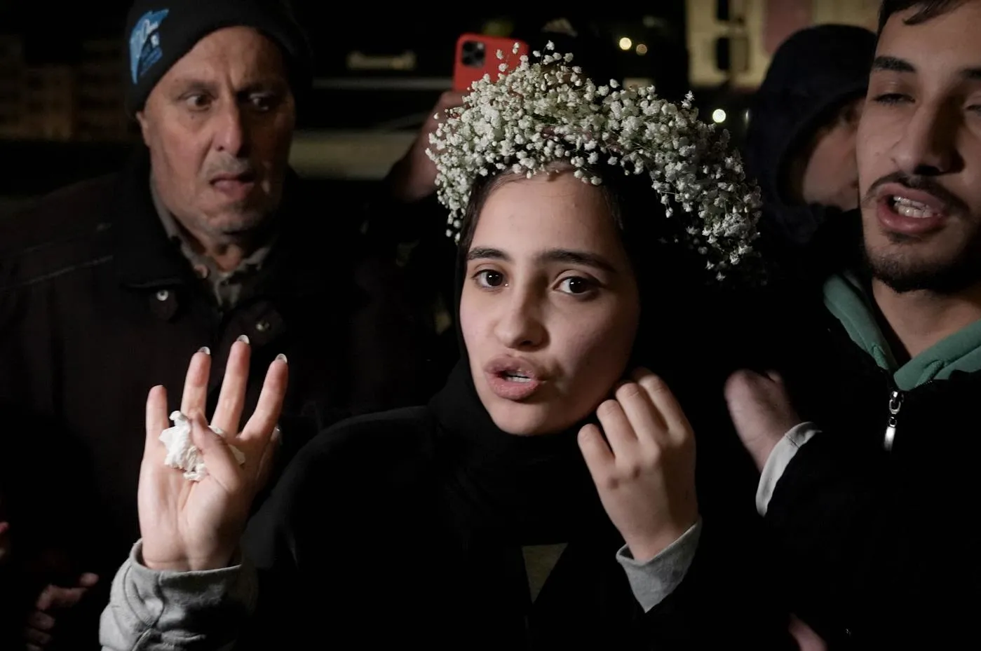 Hamas ve İsrail arasında varılan ateşkes mutabakatına göre karşılıklı esir takasının birinci turunda serbest bırakılan Filistinli 90 kadın ve çocuk esir, İsrail'in süreci geciktirmesi ve engellemelerine rağmen halk tarafından işgal altındaki Batı Şeria'nın Ramallah kentinde binlerce kişinin sevgi gösterisiyle karşılandı.