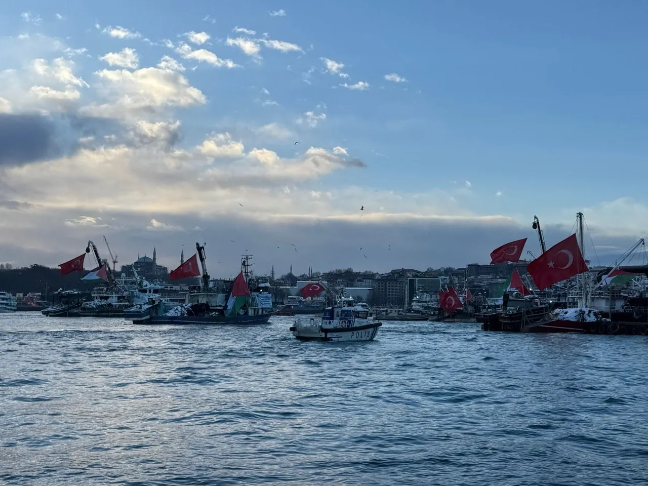 Yaklaşık 400 sivil toplum kuruluşunun (STK) katılımıyla, Galata Köprüsü'nde "Sinmiyoruz, susmuyoruz Filistin'i unutmuyoruz"sloganıyla düzenlenecek yürüyüş için vatandaşlar Ayasofya-i Kebir Cami-i Şerifi ile Sultanahmet, Fatih, Süleymaniye camileri ve Eminönü Yeni Cami'de sabah namazı öncesi bir araya geldi.