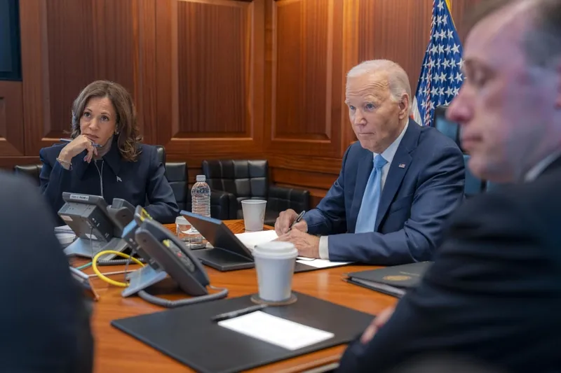 Açıklamaya göre Biden ile Harris, Beyaz Saray'daki Durum Odası'nda ulusal güvenlik ekibiyle bir araya gelerek İran'ın İsrail'e yönelik son füze saldırılarıyla ilgili gelişmeleri anlık olarak takip ediyor.