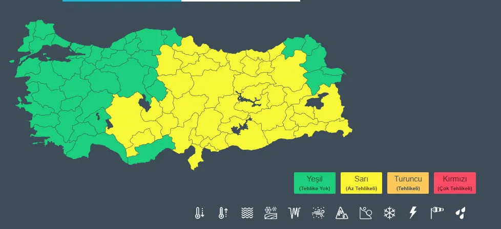 41 İL İÇİN SARI KODLU UYARI