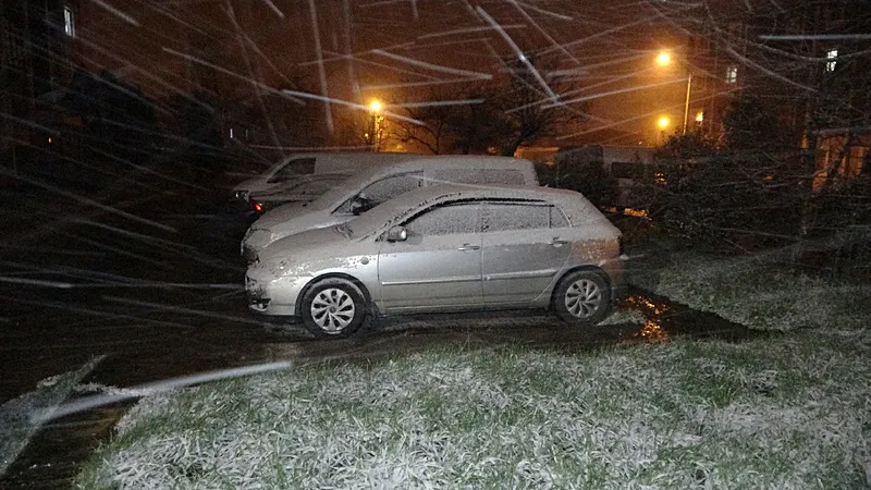Kar yağışının etkili olduğu bölgelerde park halindeki araçlar, yol kenarları ve yeşil alanlar beyaz örtüyle kaplandı. Sürücüler ise yağış nedeniyle trafikte dikkatli ilerledi.