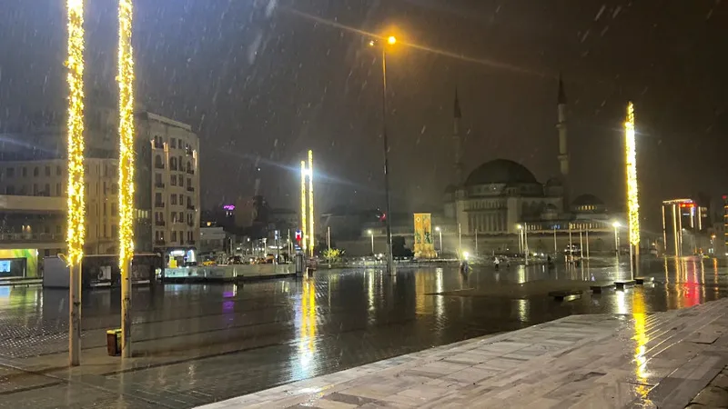 İstanbul’un simge noktalarından Taksim Meydanı’nda lapa lapa yağan kar, ortaya kartpostallık görüntüler çıkardı. Sabahın erken saatlerinde başlayan yağışla birlikte meydan ve çevresi kısa sürede beyaza bürünürken, kar yağışı vatandaşların cep telefonu kameralarına yansıdı.