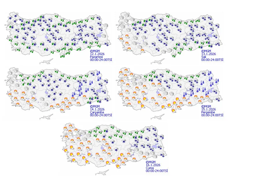 12 OCAK PAZARTESİ BÖLGE BÖLGE HAVA DURUMU RAPORU