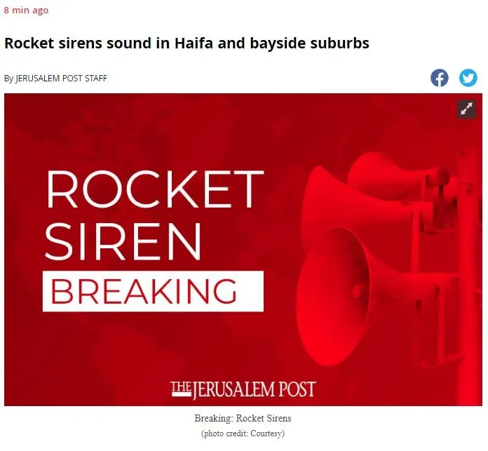 İsrail basını Hayfa ve körfez kıyısındaki banliyölerde roket sirenlerinin duyulduğunu bildirdi.