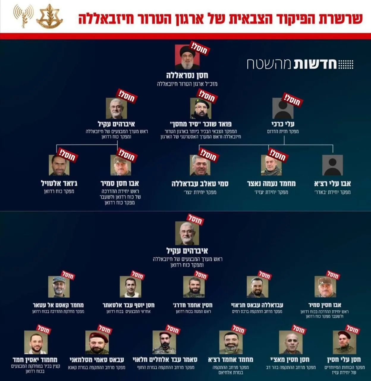 İsrail'e göre, ölen 20 Hizbullah üyesi arasında Hasan Nasrallah'ın güvenlik şefi İbrahim Hüseyin Cezini, danışmanı Semir Tevfik Dib'in yanı sıra Hizbullah Askeri Kapasite Artırım lideri Abdülemir Muhammed Seblini, Hizbullah'ın Silah Gücü Koordinatörü Ali Naaf Eyüb de var.