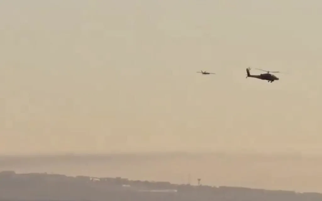 Aynı şekilde, sosyal medyada dolaşan bir görüntüde bölgede uçuş yapan bir helikopterin yanından İHA'nın geçtiği ve ardından saldırı alarmları çaldığı dikkati çekiyor.