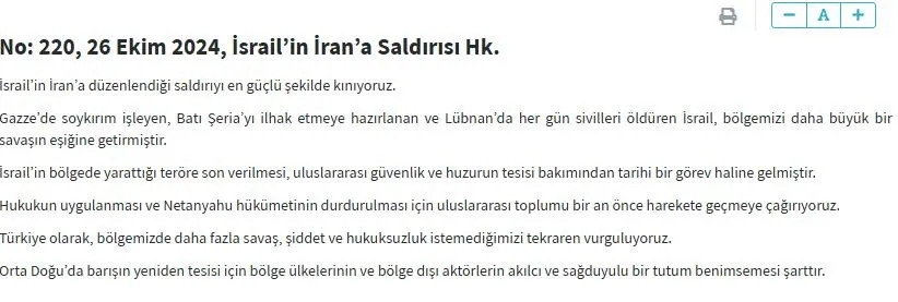Durumun sürekli olarak değerlendirildiği ve halihazırda iç cephe talimatlarında bir değişiklik yapılmadığı vurgulanan açıklamada, iç cephe talimatlarına uyulması gerektiği, halkın gelişmelerden anlık olarak bilgilendirileceği kaydedildi.