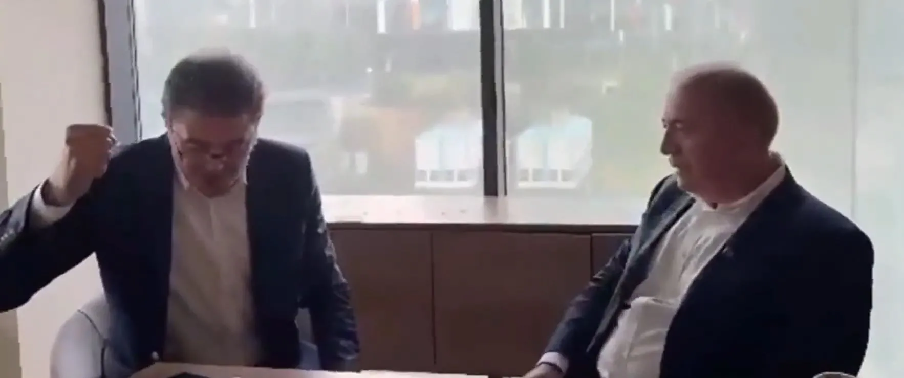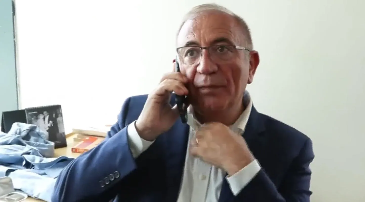Basın salonunda bir koltuğa oturan Tekin'in ilk olarak bir telefon görüşmesi gerçekleştirdi.