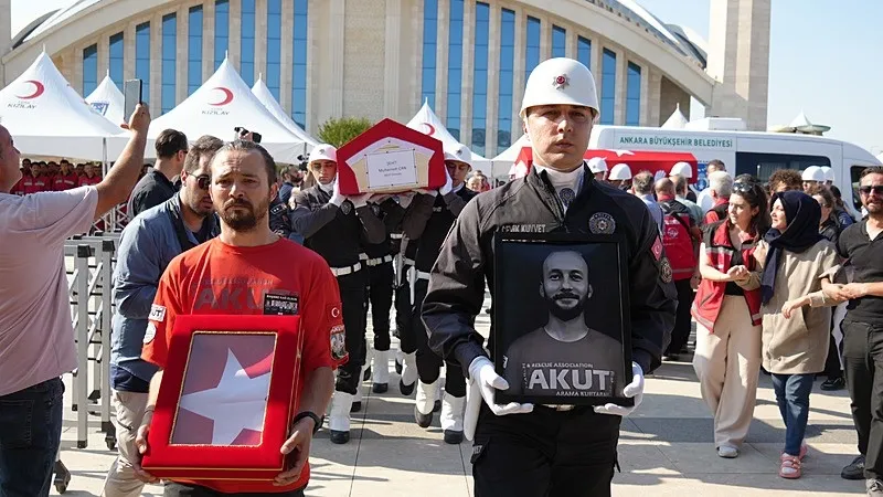 Eskişehir'in Seyitgazi ilçesinde çıkan orman yangınıyla mücadele ederken şehit olan 5 AKUT gönüllüsü, Ankara'da son yolculuklarına uğurlandı.