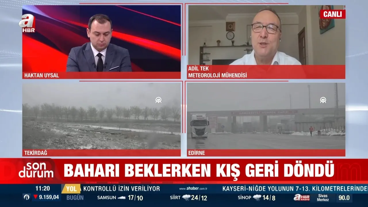 Adil Tek, A Haber canlı yayınına bağlanarak,"Bu soğuk hava dalgası yaklaşık bir hafta daha sürecek. Batı Karadeniz’de gece saatlerinde kar yağışı görülebilir. Marmara Bölgesi, Avrupa üzerinden gelen soğuk havanın etkisi altında. Bu durumu biz ‘omega blok’ olarak adlandırıyoruz. Avrupa’nın doğusunda yüksek basınç etkili ve bu da kutuplardan gelen soğuk havayı üzerimize çekiyor"dedi.