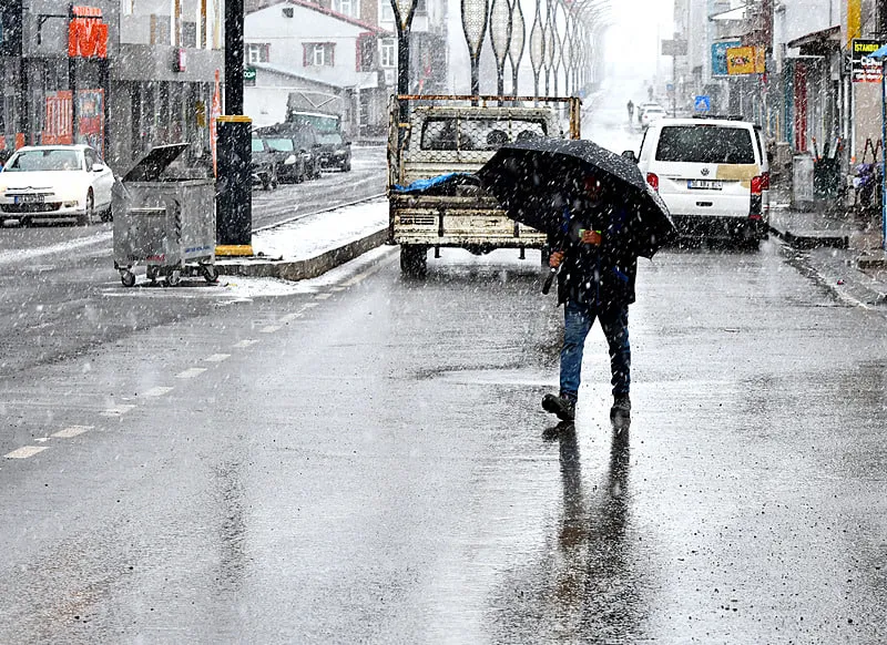 Kars: 12°C, karla karışık yağmur ve kar. Yerel kuvvetli.