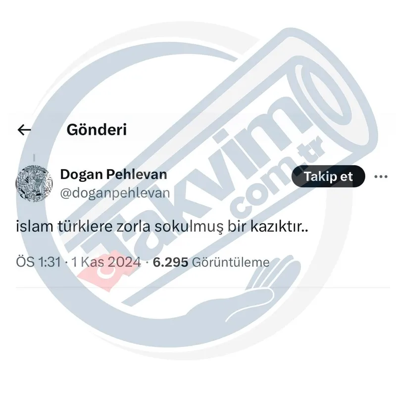 İslam'a ve Müslümanlara karşı nefretini sosyal medyada göstermekten geri durmayan Pehlevan, söz konusu karikatürün Genel Yayın Yönetmeni Tuncay Akgün'ün onayı olmadan yayımlanmayacağını iddia etti.