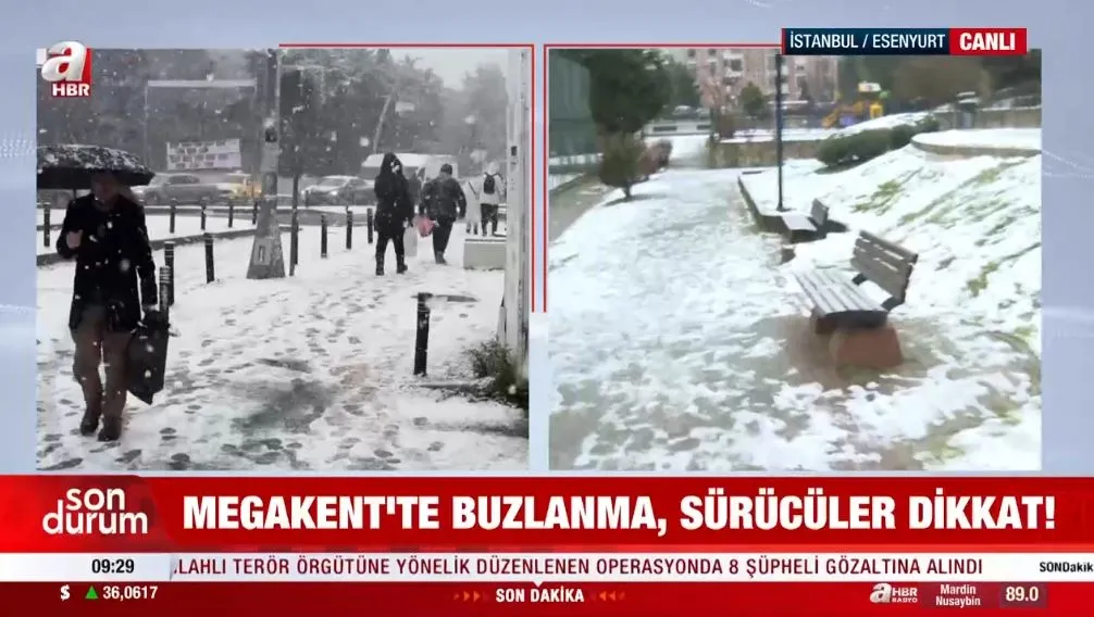 A Haber canlı yayınında aktarılan bilgilere göre, İstanbul'da sabah saatlerinden itibaren gizli buzlanmalar etkili olmaya başladı. Hava sıcaklıklarının düşüş göstermesiyle birlikte, özellikle yollarda kayganlık oluşabileceği ve dikkatli olunması gerektiği bildirildi.