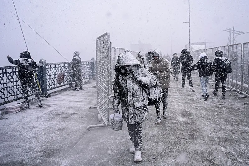 İstanbul'da yeni yılla birlikte etkisini sürdüren soğuk hava dalgası, öğleden sonra kar fırtınasına dönüştü.
