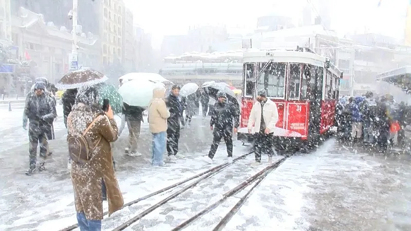 Lapa lapa yağan karın ardından Taksim Meydanı beyaza büründü.
