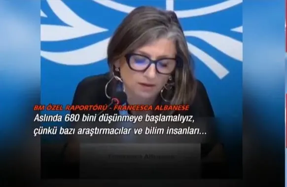 BM Filistin Özel Raportörü Francesca Albanese, Filistin'de gerçek ölü sayısının 680 bin olduğunu ifade etti.