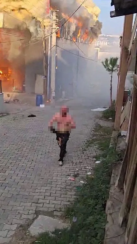 Depodan yaralı çıkan kişi cep telefonuyla görüntülendi.
