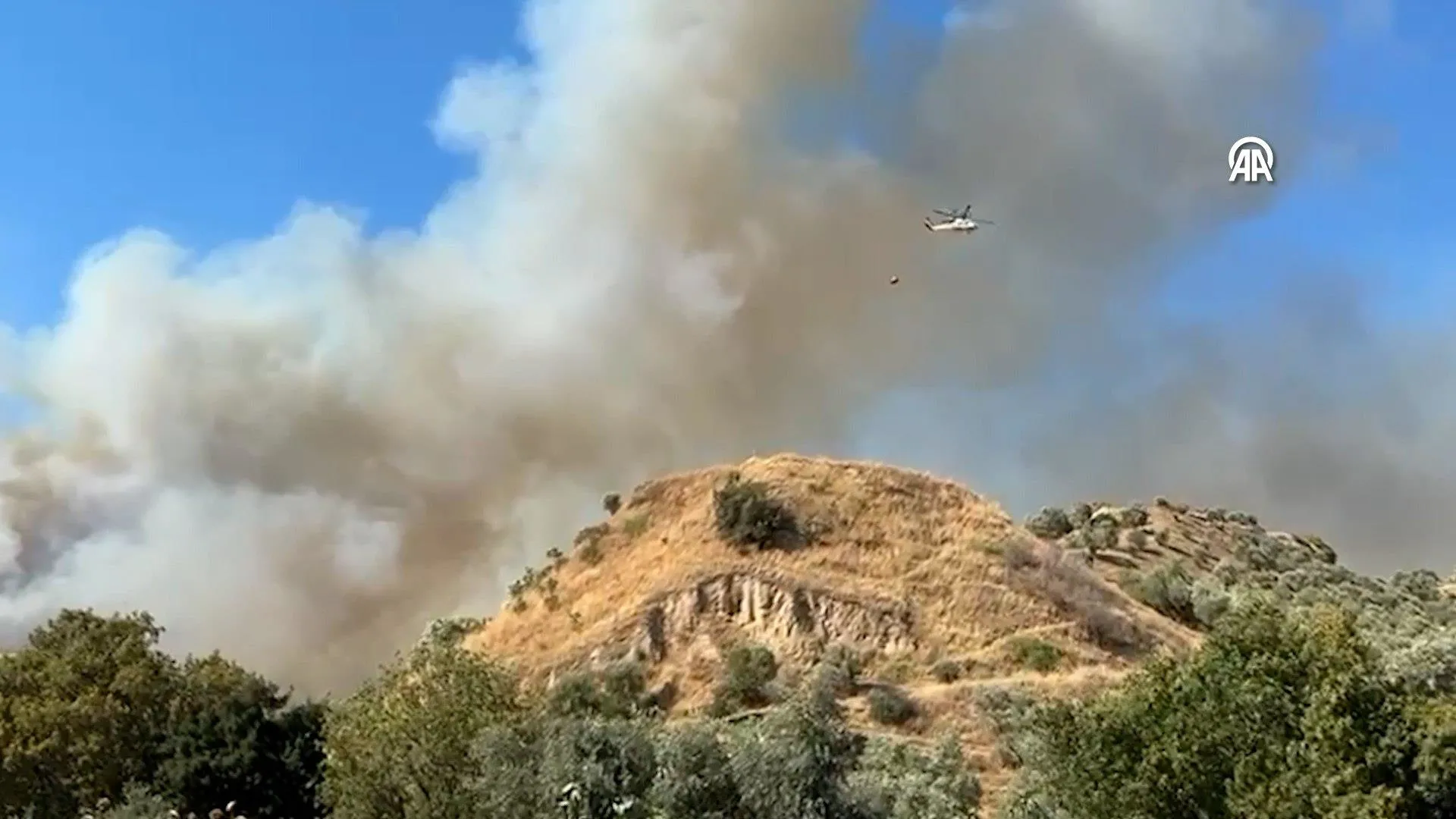 Yangını kontrol altına almak için ekiplerin havadan ve karadan müdahalesi sürerken, vatandaşlar da ekiplere destek vererek yangına müdahale ediyor.