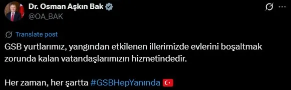 Açıklamada görüşlerine yer verilen Vali Yavuz, yangının en kısa sürede kontrol altına alınması ve vatandaşların can güvenliğinin sağlanması adına devletin tüm kurumlarının sahada görev başında olduğunu, vatandaşların can ve mal güvenliği için tüm önlemlerin titizlikle alındığını bildirdi.
