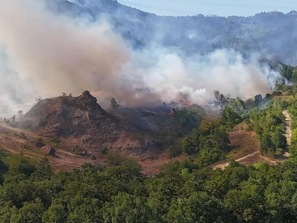 DÜZCE-SAKARYA SINIRINDAKİ YANGINA HAVADAN VE KARADAN MÜDAHALE SÜRÜYOR