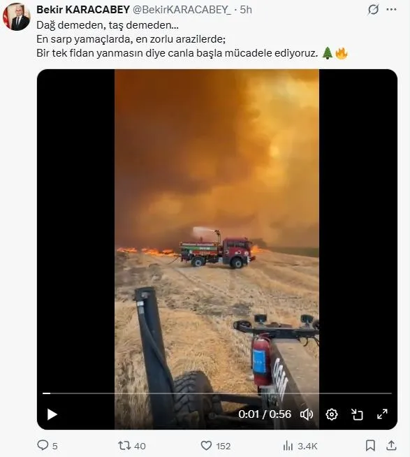 "Bu yangını da tamamen kontrol altına aldık. Devam eden diğer yangınlara hem havadan hem karadan yoğun şekilde müdahalemiz devam etti. Karabük'ün Safranbolu, Antalya'nın Gazipaşa, Bursa'nın Kestel ilçelerindeki yangınlar da kısmen kontrol altına alınmıştı. Buradaki yangınların tamamen kontrol altına alındığının bilgisini de bugün paylaşıyoruz. Son 24 saatte çıkan toplam 55 yangının tamamı da kontrol altında. Soğutma çalışmalarımız devam ediyor."