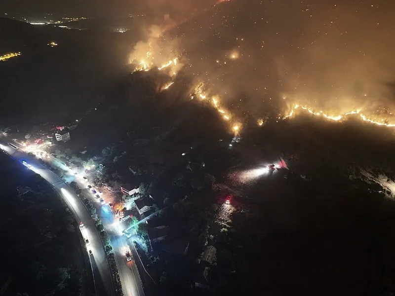 "Sahada 500'ün üzerinde görevli personel olduğunu özellikle söylemek isterim. 750'nin üzerinde yangına müdahale edebilecek araçların var. Yakın illerde özellikle kamu kurumlarında olan arazözünden su taşıyabilecek araçlarına kadar koordine ettik. Sabaha kadar da onların bölgeye intikal etmesini sağlayarak inşallah yangını daha da büyümeden bu şekilde söndürülmüş oluruz. Yaralanan ne bir personelimiz ne de bir vatandaşımız var. Bize bununla ilgili bir bilgi gelmedi. İnşallah da yaralanan olmaz."