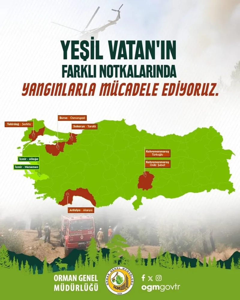 Orman Genel Müdürlüğü, yangınlardaki son durumla ilgili sosyal medya hesabından bir açıklama yaptı.