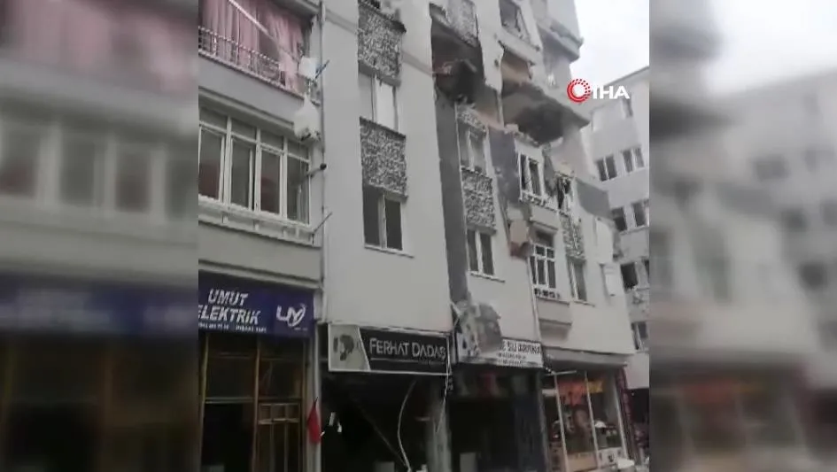 PATLAMA YAŞANAN BİNA HAVADAN GÖRÜNTÜLENDİ