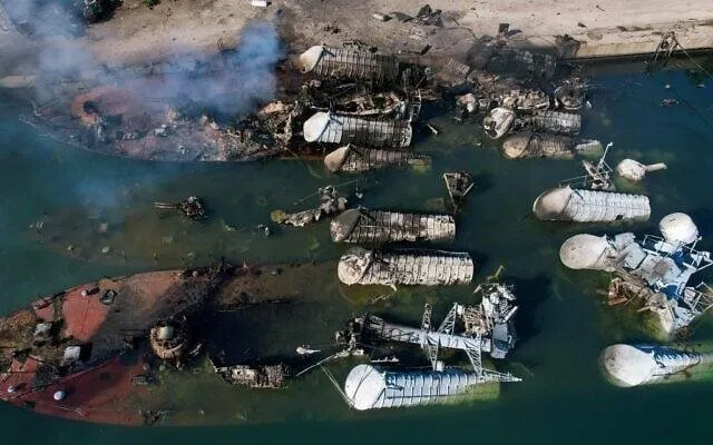 İsrail'in saldırı düzenlediği Lazkiye Limanı'ndaki hasar, AFP