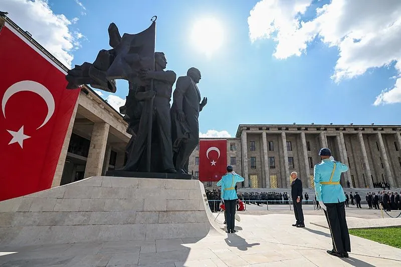 TBMM Başkanı Numan Kurtulmuş'un anıta çelenk bırakmasının ardından bando eşliğinde saygı duruşunda bulunularak, İstiklal Marşı okundu.