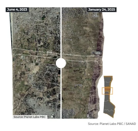 İsrail güçleri pazar günü Gazze'nin kuzeyini Şeridin geri kalanından ayıran askerileştirilmiş bölge Netzarim Koridoru'ndan çekildi. İsrail saldırılarından önce ve geçen ayın sonlarına ait uydu görüntüleri bölgedeki yıkımı ortaya çıkardı.