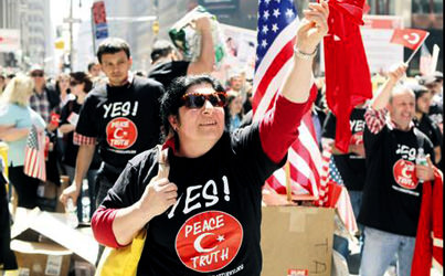ABD'nin New York kentindeki ünlü Times Meydanı'nda, ''Ermeni Yalanlarına Son ve Şehit Diplomatlarımızı Anma'' mitingi düzenlendi. Genç Türkler Derneği'nin 5. kez düzenlediği miting, İstiklal Marşı ve Amerikan milli marşının okunmasıyla başladı. Ardından Ermeni terör örgütü ASALA tarafından öldürülen şehitler için 1 dakikalık saygı duruşunda bulunuldu. Mitinge ellerinde Türk, Azerbaycan ve KKTC bayraklarıyla gelenlerden bazıları ''Barış ve Gerçeğe Evet, Ermeni Terörüne ve Yalanlarına Hayır'' yazılı tişörtler giydi.