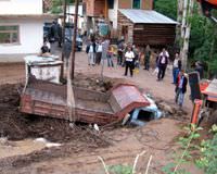 Öte yandan Gümüşhane merkeze bağlı Boyluca köyünde de dolu ve sağanak yağış sele neden oldu. Boyluca köyü yolu ulaşıma kapandı. Cevdet Öztürk'e (48) ait 06 TS 486 plakalı damperli kamyon sel sularına kapıldı.