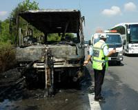 Kocaeli'nde seyir halindeki bir minibüste çıkan yangın nedeniyle TEM otoyolu bir süre trafiğe kapatıldı. 8 yolcunun yara almadan kurtarıldığı yangında, sürücünün eli hafif şekilde yandı.