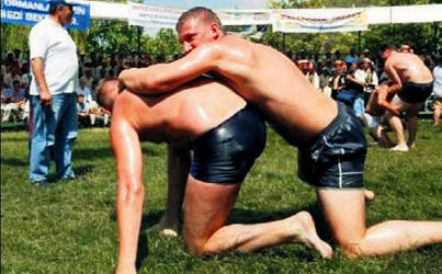 Muğla'da yapılan yağlı güreşlere İngiliz ve Rus turistler de katılmak isteyince olanlar oldu... Sünnetsiz oldukları için kıspet giydirilmeyen turistleri hiçbir şey durduramadı. Yağlanıp mayolarıyla 'er meydanı'na çıkan' turistler büyük ilgi toplayınca, pehlivanlar tepki gösterdi