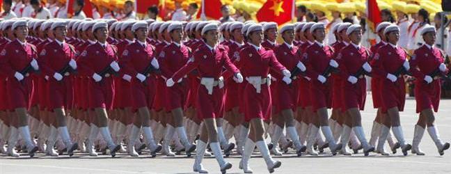 Hu'nun konuşmasının ardından da askeri geçit töreni başladı. İlk kez tanıtılan "Changjian (Uzun Kılıç) 10" tipi kruz füzeleri ile "Dongfeng (Doğu Rüzgarı) 21-C" tipi yeni nesil orta-uzun menzilli karadan karaya konvansiyonel füzeler törenin en dikkat çeken bölümü oldu. Çin'in stratejik nükleer gücünü temsil için de geçit töreninde "Dongfeng (Doğu Rüzgarı) 31-a" tipi nükleer füzeler gösterildi. Kara, Deniz ve Hava Kuvvetleri'nden oluşan kadın askerler kıtası ile Deniz, Kara ve Harp Okulu öğrencilerinin geçişi de ordunun yeni yüzünü gösterdi.