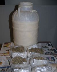 Otobüsten bidonu alıp taksiye binmek üzere ayrılan M.V.Ç., kendisini bekleyen polis ekipleri tarafından kıskıvrak yakalanarak gözaltına alındı. Otogar yakınındaki bir kamyon garajında bakım elemanı olarak çalıştığı öğrenilen M.V.Ç.'nin aldığı bidonu açan polis, peynirlerin ortasında poşetlerle paketlenmiş halde 2 kilo 270 gram esrar buldu. Bidon içindeki 6 paket esrarın su sızmasını engellemek için poşetlerle çok sıkı bağlandığı tespit edildi.