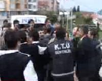 Karadeniz Teknik Üniversitesi (KTÜ) Dr.Osman Turan Kültür ve Kongre Merkezi'nde yapılan toplantı sırasında bir grup öğrenci, üniversitenin A Kapısı önünde protesto düzenlerlerken, öğrencilerle üniversitenin güvenlik güçleri arasında kargaşa yaşandı.