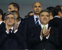Cumhurbaşkanı Abdullah Gül ile Ermenistan Cumhurbaşkanı Serj Sarkisyan, Türkiye-Ermenistan maçını izlemek üzere Atatürk Stadı'na geldi.