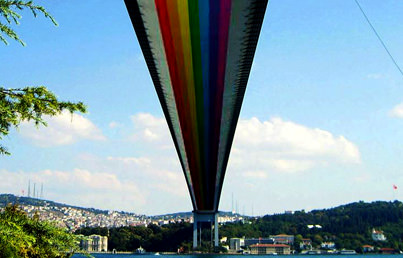 İngiliz sanatçı Ned Pamphilon, en büyük hayalini gerçekleştirmek için her yolu deniyor. 1999 yılından beri İstanbul Boğaz Köprüsü'nü gökkuşağı renklerine boyama projesini hayata geçiremeyen Pamphilon'e destek çığ gibi büyüyor. Facebook, Frendfeed gibi sitelerde Pamphilon'u destekleyenlerin sayısı 200 bini aştı. Başbakan Recep Tayyip Erdoğan ve Cumhurbaşkanı Abdullah Gül'den İstanbul Boğaziçi Gökkuşağı Köprüsü Projesi'ni tekrar düşünmelerini isteyen Pamphilon, "7 rakamı Türkiye için çok özel. Gökkuşağı Türkiye'de doğdu. Nuh Peygamber, Ağrı Dağı'nda gökkuşağının 7 rengini gördü. 7 bölgenin bulunduğu Türkiye'nin adı da 7 harften oluşuyor. İlginçtir etrafında sınırı olan 7 komşusu var. Gelecek yıl, İstanbul Kültür Başkenti olacak. Bu durum, köprünün boyanması için fırsat" dedi. 10 yıla yakın İstanbul'da yaşayan başarılı sanatçı, köprünün gökkuşağı renginde olmasının intiharları da azaltacağına inanıyor.