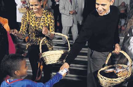 ABD Başkanı Barack Obama ve First Lady Michelle Obama, Cadılar Bayramı'nı Beyaz Saray'da verdikleri bir partiyle kutladılar. First Lady partide kedi kadın kılığına girdi. Beyaz Saray sözcüsü Robert Gibbs, Star Wars kahramanlarının kostümünü giyerken ABD'nin BM Daimi Temsilcisi Susan Rice da Disney karakteri Goofy kılığındaydı. Partide birbirinden ilginç kostümler içinde dansçılar gösteri yaptı.Obama çifti, çocukların çoğunluğu oluşturduğu konuklarını, kapıda hediyelerle karşıladı.