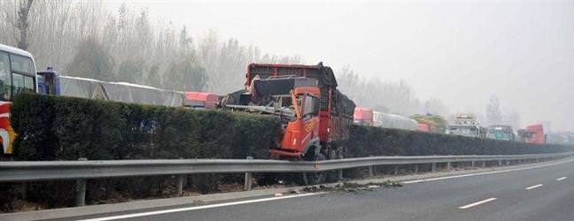 Pekin'de şehri çevreleyen yoların en dışındaki 6. çember yolundaki yoğun sis kentte daha önce görülmeye zincirleme kazaya yol açtı. Yüzlerce TIR ve kamyonun doğu istikametindeki sağ şeritte birbirine girdiği, bazı TIR'ların kabininin tamamen ezildiği görüldü. Zincirleme kazada ölen ya da yaralı konusunda henüz bir bilgi bulunmuyor.