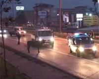 Polis ve zabıta ekiplerinin canından bezdiren kurbanlık tosunu durdurma girişimlerinin tamamı başarısız oldu. Zabıta ekipleri bunun üzerine ekip otosuyla iki kez sert bir şekilde tosuna çarptı. Sendeleyip yere düşen tosun kalkıp yoluna devam ederken zabıtanın ekip otosunda maddi hasar meydana geldi.