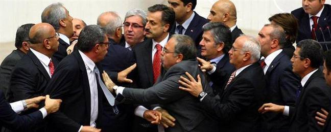 TBMM Genel Kurulunda, MHP'li bazı milletvekilleri, ''demokratik açılım'' konusunda partisinin görüşlerini açıklamak üzere kürsüde konuşan AK Parti Grup Başkanvekili Suat Kılıç'ın üzerine yürüdü.