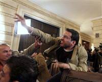 ABD'nin eski başkanı George Bush'a ayakkabı fırlatan Iraklı gazeteci Muntazır El Zeydi'ye Paris'teki basın toplantısında ayakkabı fırlatıldı.