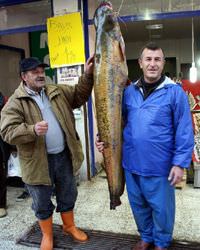 Dev balığı parçalayarak kilogramı 13 TL'den satacaklarını kaydeden Hüseyin Genç, 42 kilogram ağırlığındaki balığın 100 kişiyi doyurmaya yeteceğini söyledi.