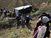 Çanakkale'de devrilen yolcu midibüsünde ilk belirlemelere göre 27 kişi yaralandı.