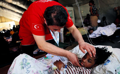 Haiti, depremin yaralarını sarmakta güçlük çekerken Türkler başkent Port Au Prince'te umut dağıtmaya devam ediyor. Arama-kurtarma timleri GEA ve Kuzılay'a dün de 6 kişilik AKUT ile 5 kişilik Kimse Yok Mu Yardım Derneği ekipleri eklendi. Kızılay'dan sonra İnsani Yardım Vakfı (İHH) da enkazların arasında kurulan hastanelerde ve yemek salonlarında yardıma muhtaçların acısını dindirmeye çalışıyor. Yüzlerce kişinin tedavisini üstlenen Kızılay, arama-kurtarma timlerimizden sonra övgüyü alan bir başka gururumuz oldu. Kimse Yok Mu Derneği ekibinde ise doktor, arama ve kurtarmacı ile üç gönüllü bulunuyor. İHH, Başkent'te yetim kalan 700 çocuğun bakımını üstlendi. Bu durum, diğer ülke yardım kuruluşlarını da harekete geçirdi.