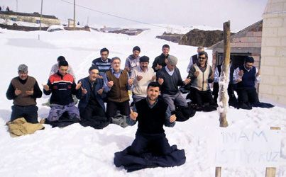 Ezan sesine hasret kalan köylüler, imam için kar üstünde dua etti